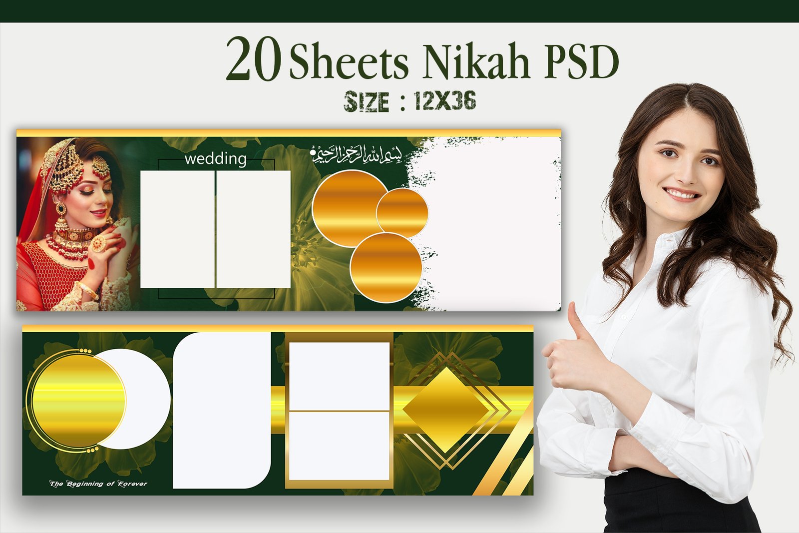 20 Sheets PSD : A complete 20-spread set with an elegant Nikah PSD Sheets.