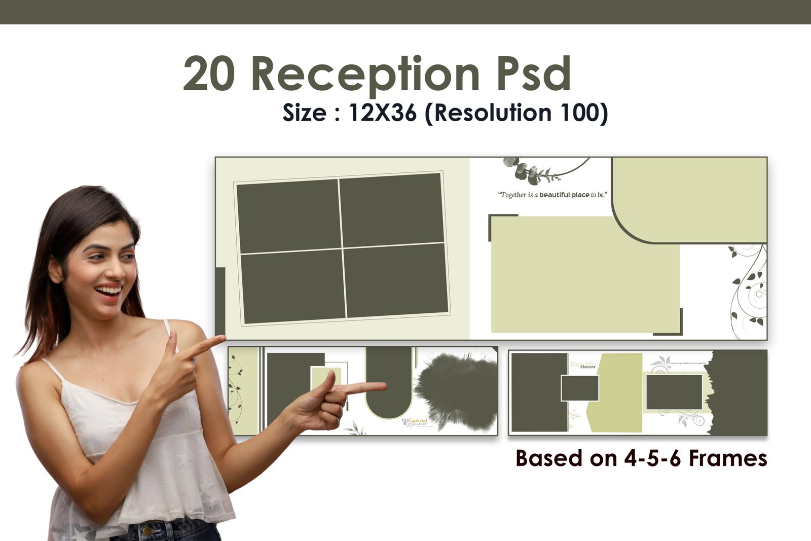 • 20 PSD Sheets: A complete 20-spread set with an elegant Reception theme.