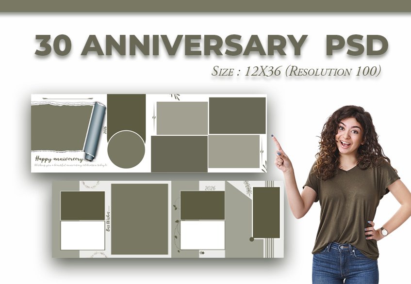• 30 PSD Sheets: A complete 30-spread set with an elegant anniversary theme.